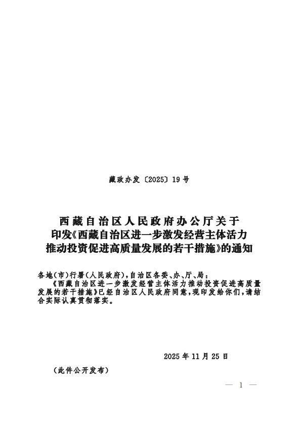 《西藏自治区进一步激发经营主体活力推动投资促进高质量发展的若干措施》